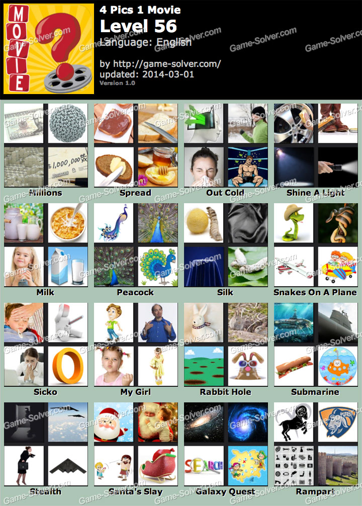 4 Pics 1 Movie 2014 Level 56 Game Solver