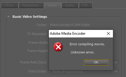 Error Compiling Movie Unknown Error Message Anyone Have This In Premiere Editors