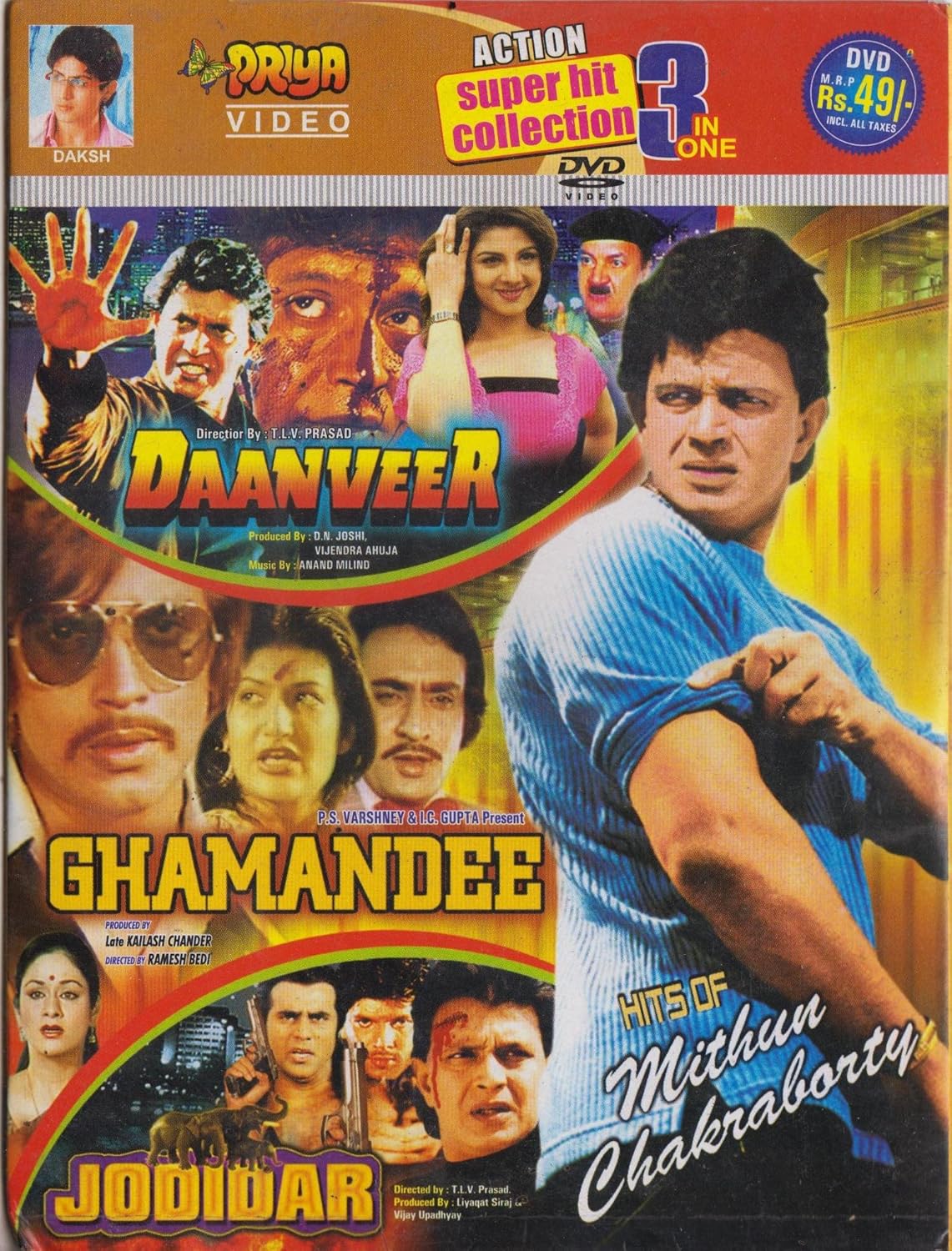 Daanveer Ghamandee Jodidar 3 Movies In 1 Dvd 501 Amazon In Mithun Chakraborty Rambha T L V Prasad Movies Tv Shows