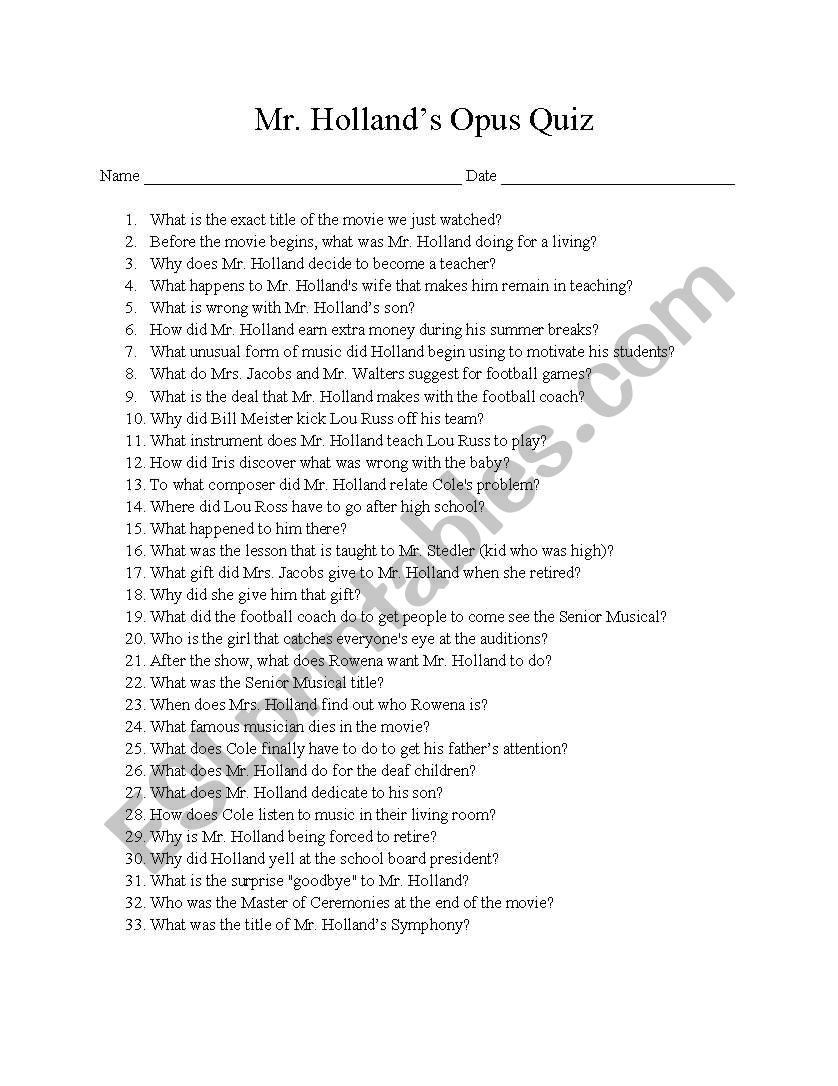 English Worksheets Mr Holland S Opus Movie Quiz
