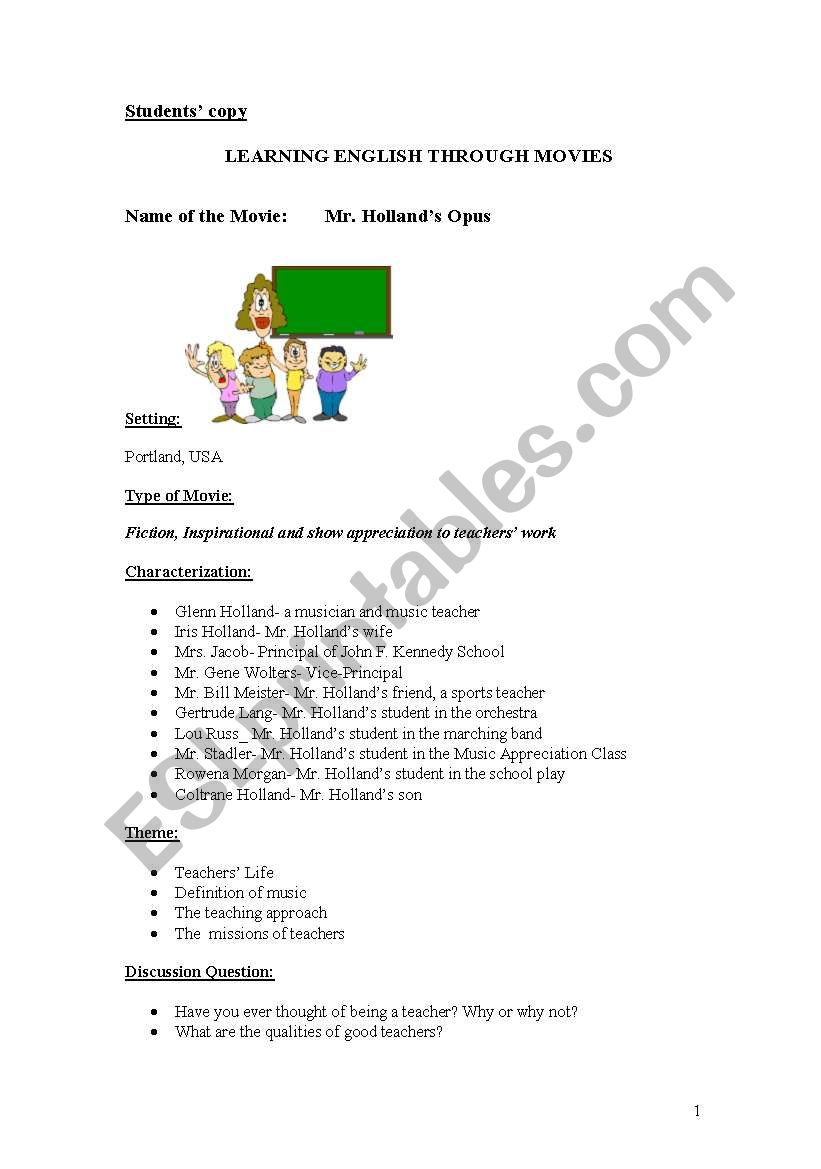 English Worksheets Mr Holland Opus Movie