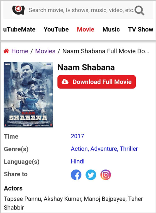 It is a prequel spin off from the 2015 film baby with taapsee pannu reprising her role as shabana. Due to many users attracted and downloaded the movie in huge number. Directed by shivam nair.